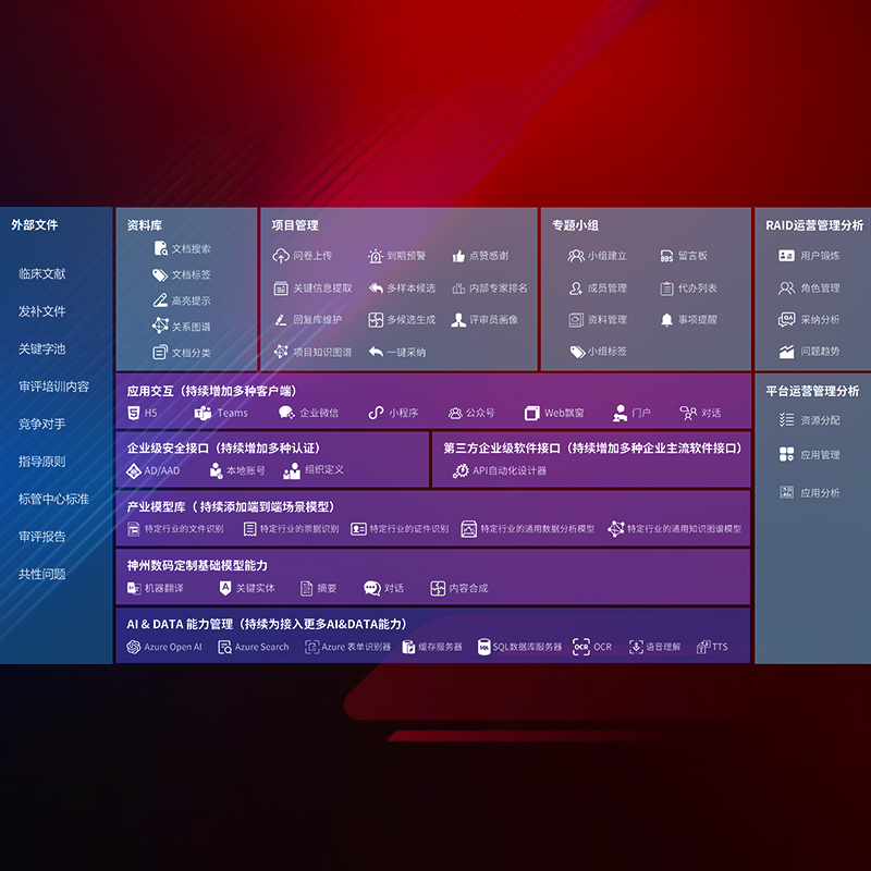 醫(yī)療器械產(chǎn)品上市前,要熟悉嚴(yán)格與繁復(fù)評(píng)審標(biāo)準(zhǔn),整理分析監(jiān)管機(jī)構(gòu)指導(dǎo)文件中的海量信息。企業(yè)急需一個(gè)智能化解決方案,提升知識(shí)管理效率,提高評(píng)審?fù)ㄟ^率,以提升其市場(chǎng)競(jìng)爭(zhēng)力。